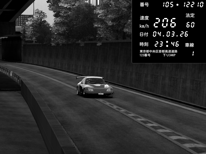 | 2026/03/04 23:46 | C1外回り 京橋 | 206 / 60 km/h | Honda S2000 Turbo GT1 Amuse (AP1) | CAPTURE |