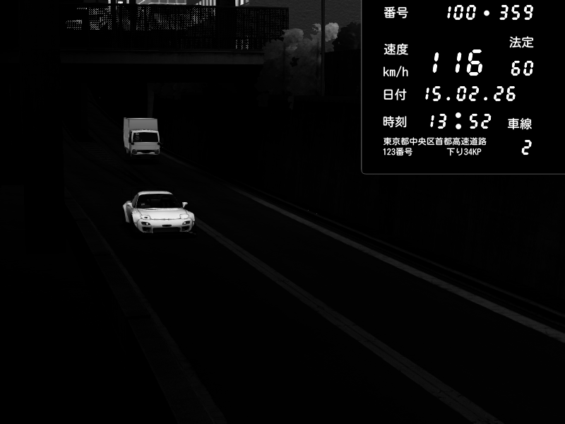 | 2026/02/15 13:52 | C1内回り 京橋 | 116 / 60 km/h | Mazda RX-7 FD3S FEED Afflux GT3 | CAPTURE |