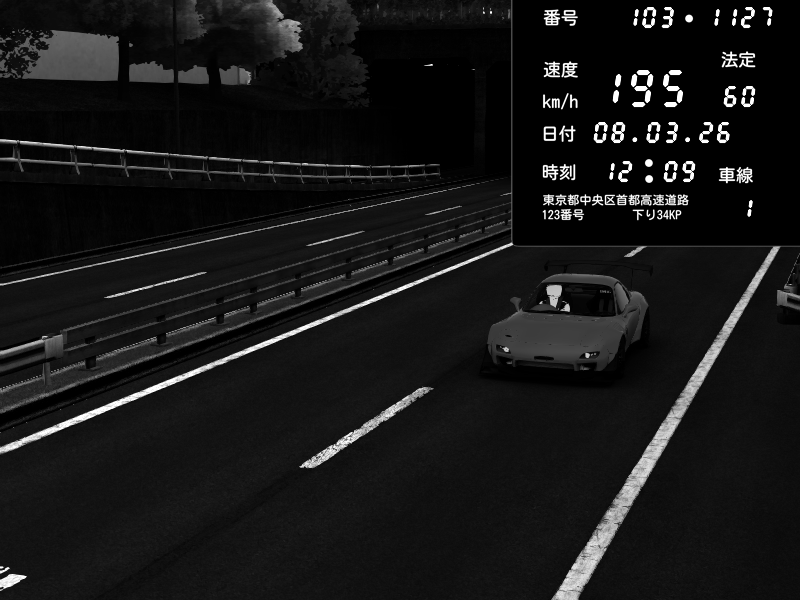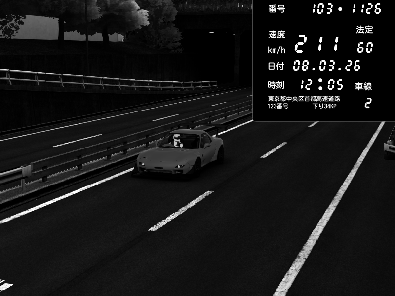 | 2026/01/25 14:33 | C1内回り 竹橋JCT | 189 / 60 km/h | Mazda RX-7 FD3S FEED Afflux GT3 | CAPTURE |
