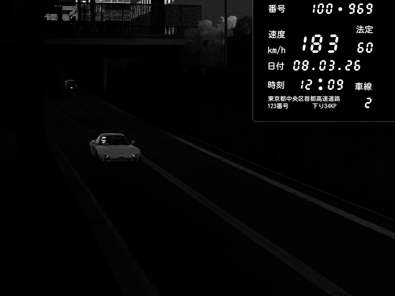 | 2026/03/08 12:09 | C1内回り 京橋 | 183 / 60 km/h | Mazda RX-7 FD3S FEED Afflux GT3 | CAPTURE |