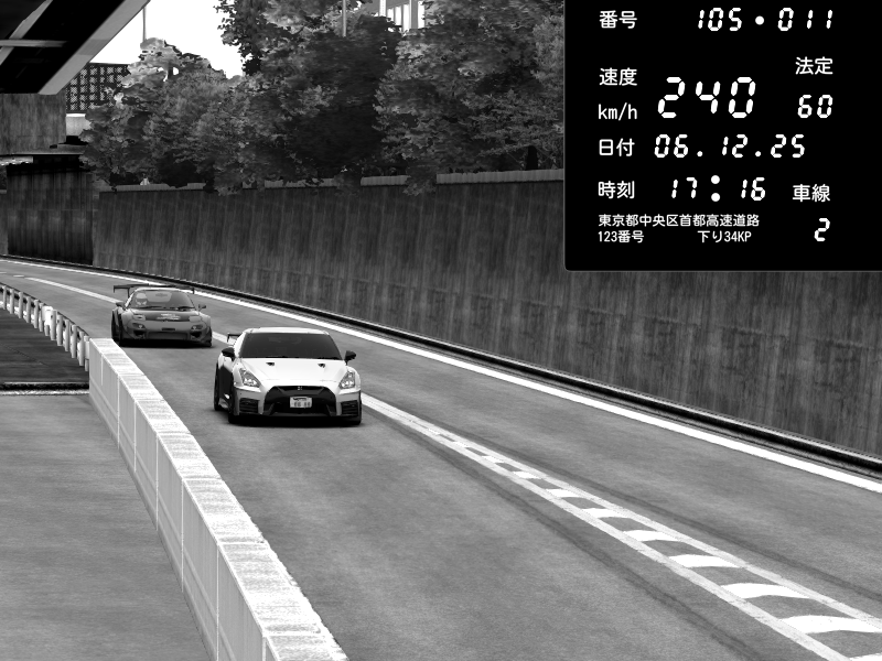 | 2025/12/06 17:16 | C1外回り 京橋 | 240 / 60 km/h | Nissan GT-R NISMO 2017 | CAPTURE |