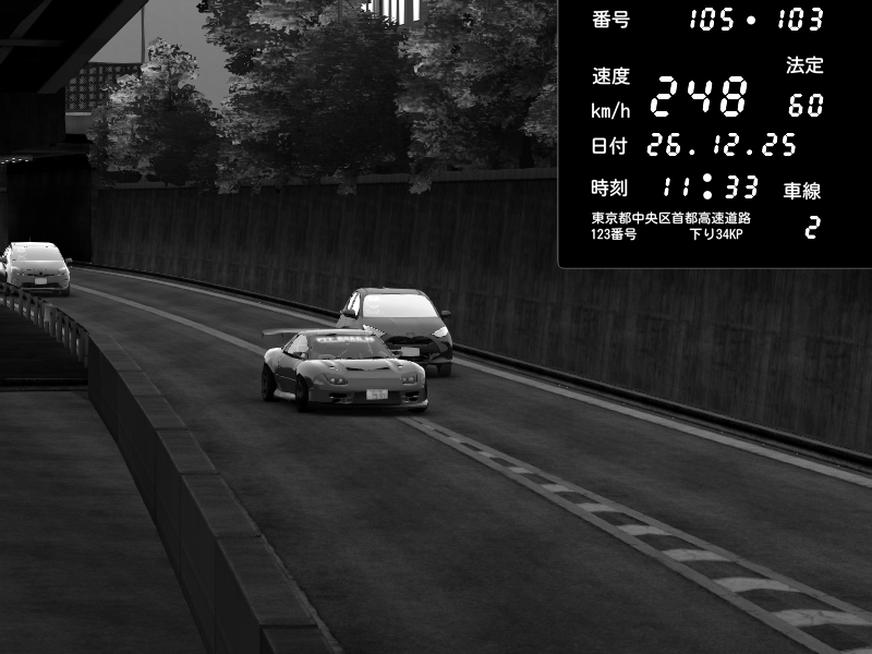 | 2025/12/26 11:33 | C1外回り 京橋 | 248 / 60 km/h | Pit Road M - Mitsubishi GTO Twin Turbo | CAPTURE |