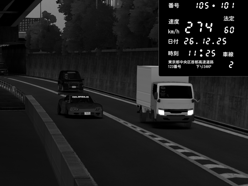 | 2025/12/26 11:25 | C1外回り 京橋 | 274 / 60 km/h | Pit Road M - Mitsubishi GTO Twin Turbo | CAPTURE |