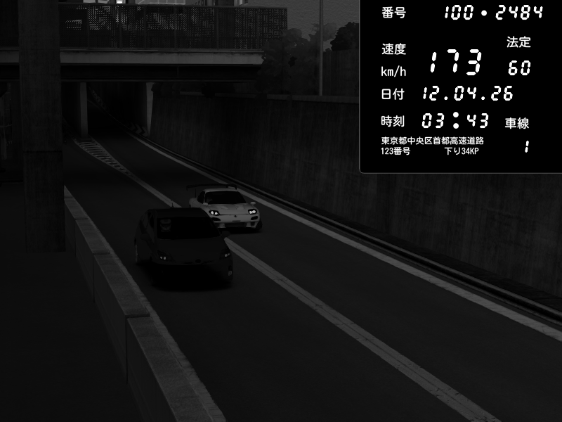 | 2026/04/12 03:43 | C1内回り 銀座 | 186 / 60 km/h | Mazda RX-7 FD3S RE Amemiya | CAPTURE |