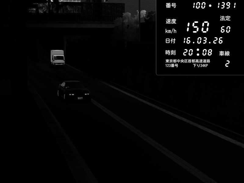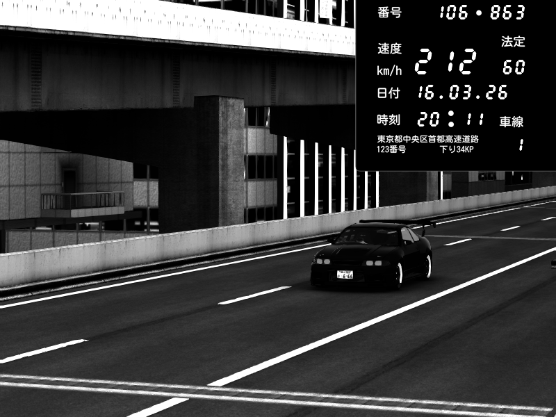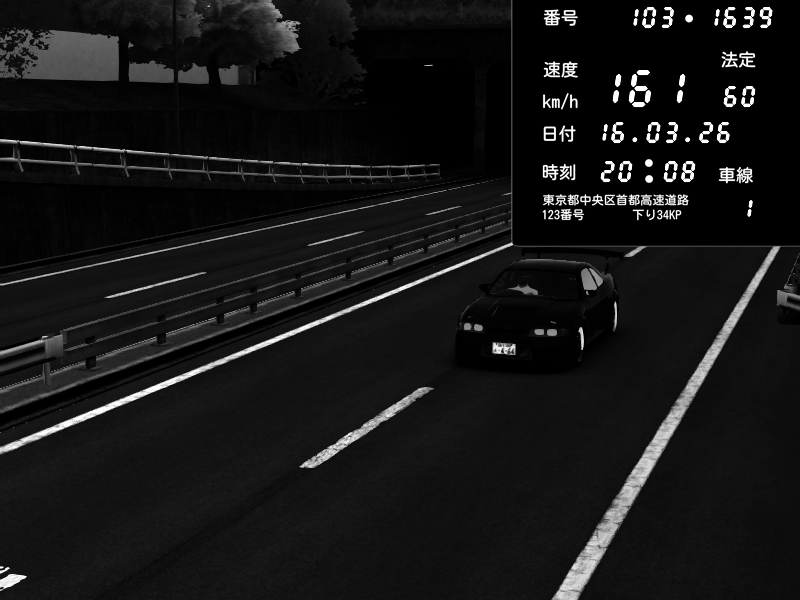 | 2026/03/16 20:08 | C1内回り 京橋 | 150 / 60 km/h | Nissan Skyline GTR R33 (S3 - Wangan) | CAPTURE |
