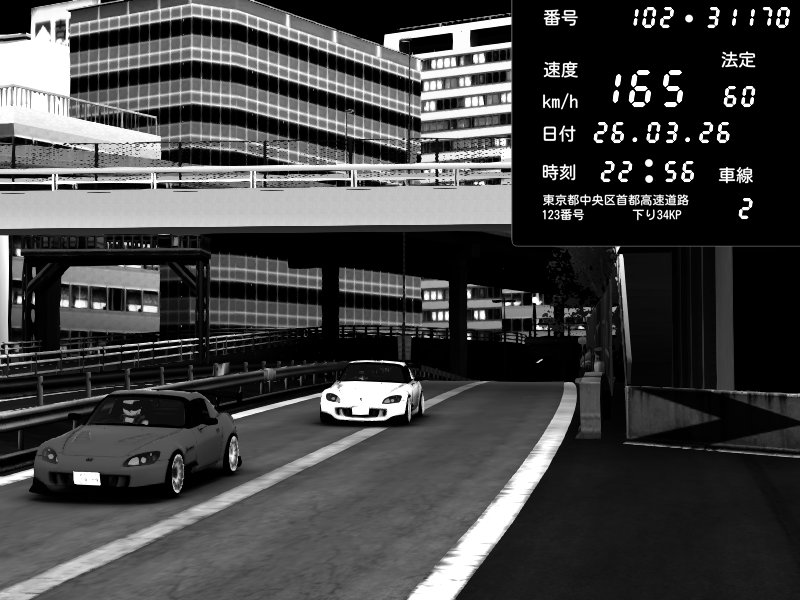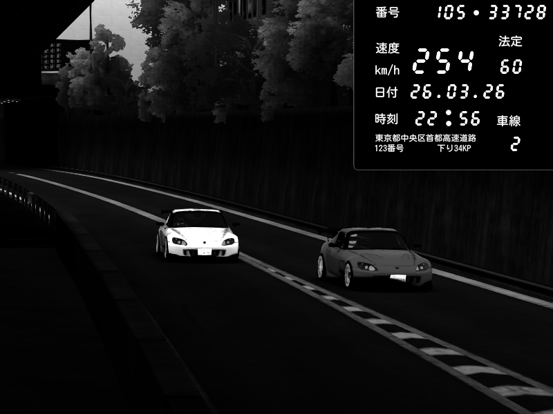 | 2026/03/26 22:56 | C1外回り 京橋 | 254 / 60 km/h | Honda S2000 (AP2 - Legendary) | CAPTURE |