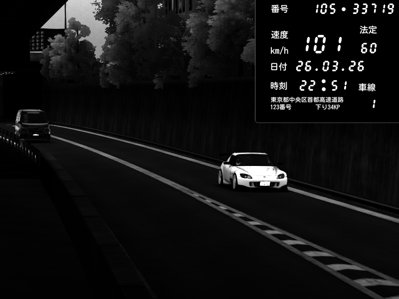 | 2026/03/26 22:51 | C1外回り 京橋 | 101 / 60 km/h | Honda S2000 (AP2 - Legendary) | CAPTURE |