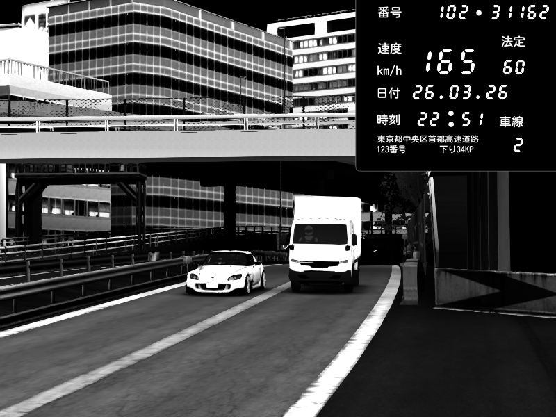 | 2026/03/26 22:47 | C1外回り 芝公園 | 228 / 60 km/h | Honda S2000 (AP2 - Legendary) | CAPTURE |