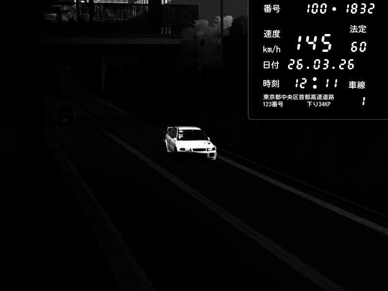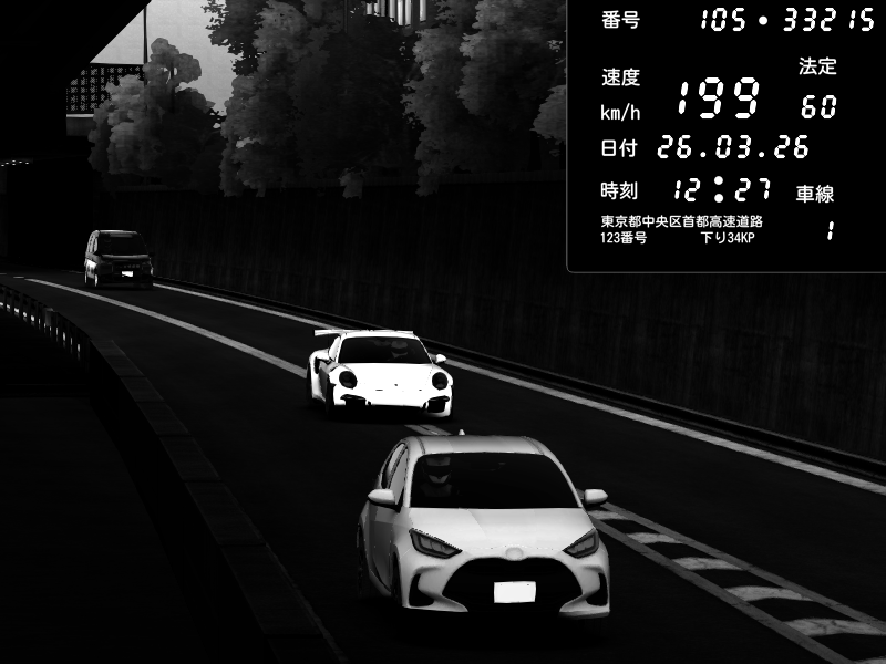 | 2026/03/26 12:27 | C1外回り 京橋 | 199 / 60 km/h | Porsche 911 GT3 RS | CAPTURE |