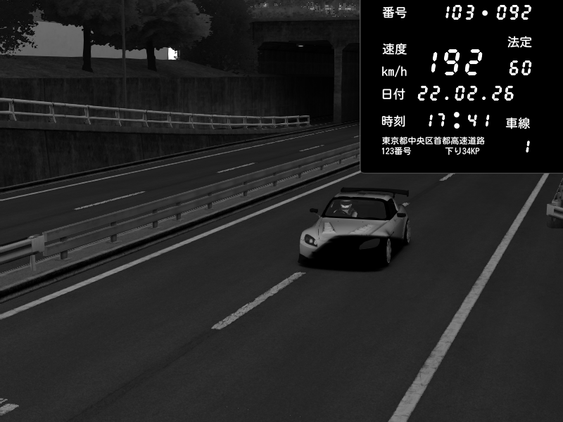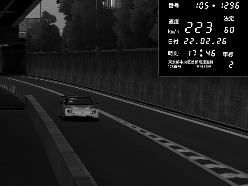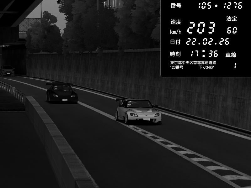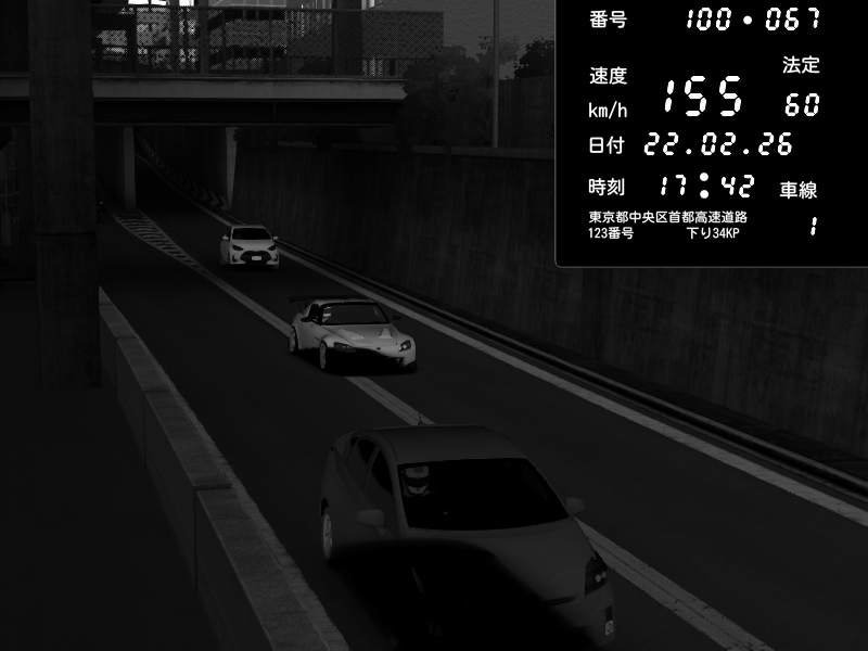 | 2026/02/22 17:41 | C1内回り 銀座 | 192 / 60 km/h | Honda S2000 (AP2 - Legendary) | CAPTURE |