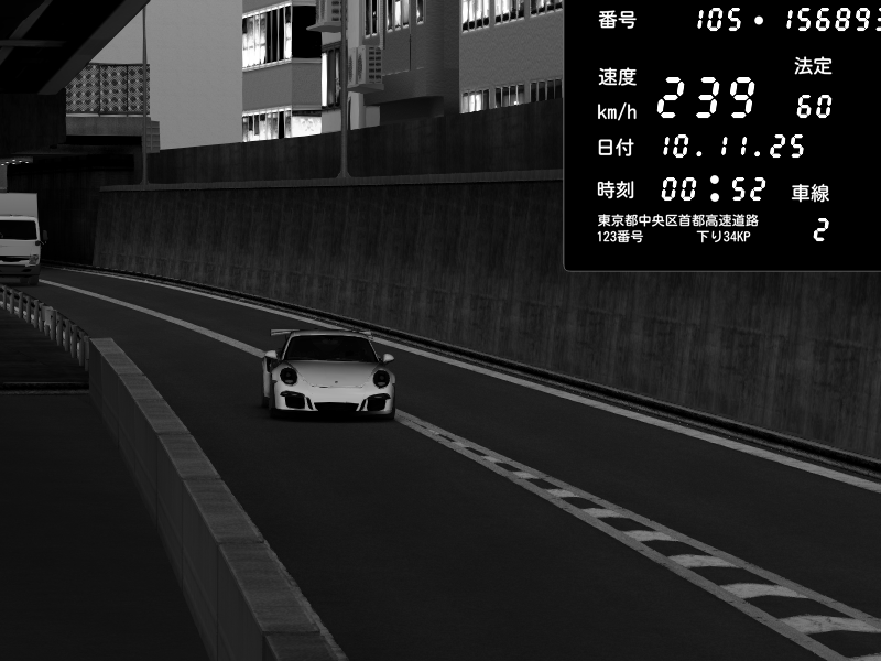| 2025/11/10 00:52 | C1外回り 京橋 | 239 / 60 km/h | Porsche 911 GT3 RS | CAPTURE |