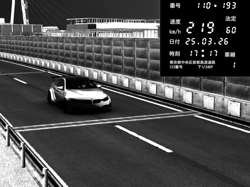 | 2026/03/25 17:17 | K1上り 羽田 | 219 / 60 km/h | BMW M4 crash.Sp Varis Widebody | CAPTURE |