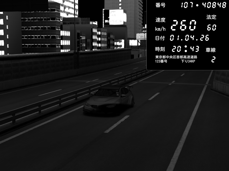 | 2026/04/01 20:27 | K1上り 羽田 | 236 / 60 km/h | BMW M4 crash.Sp Varis Widebody | CAPTURE |