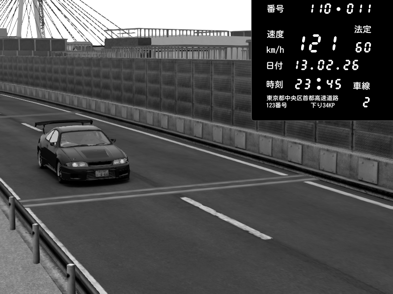 | 2026/02/13 23:45 | K1上り 羽田 | 121 / 60 km/h | Nissan Skyline GTR R33 (S3 - Wangan) | CAPTURE |