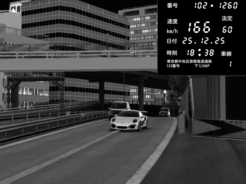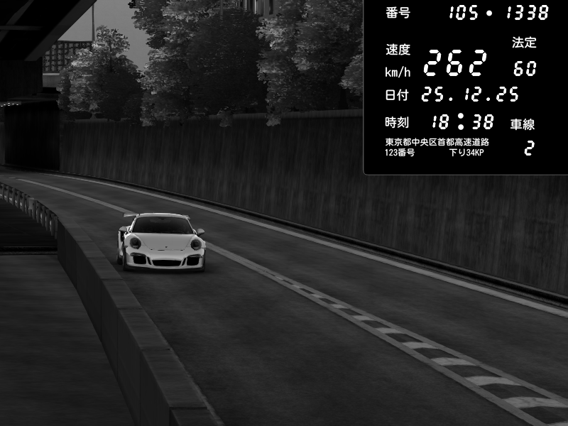 | 2025/12/25 18:38 | C1外回り 京橋 | 262 / 60 km/h | Porsche 911 GT3 RS | CAPTURE |