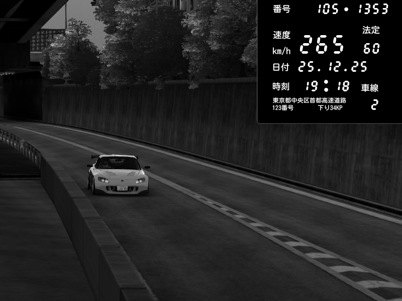 | 2025/12/25 19:18 | C1外回り 京橋 | 265 / 60 km/h | Honda S2000 (AP2 - Legendary) | CAPTURE |