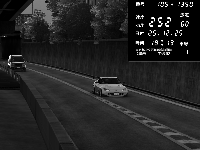 | 2025/12/25 19:13 | C1外回り 京橋 | 252 / 60 km/h | Honda S2000 (AP2 - Legendary) | CAPTURE |