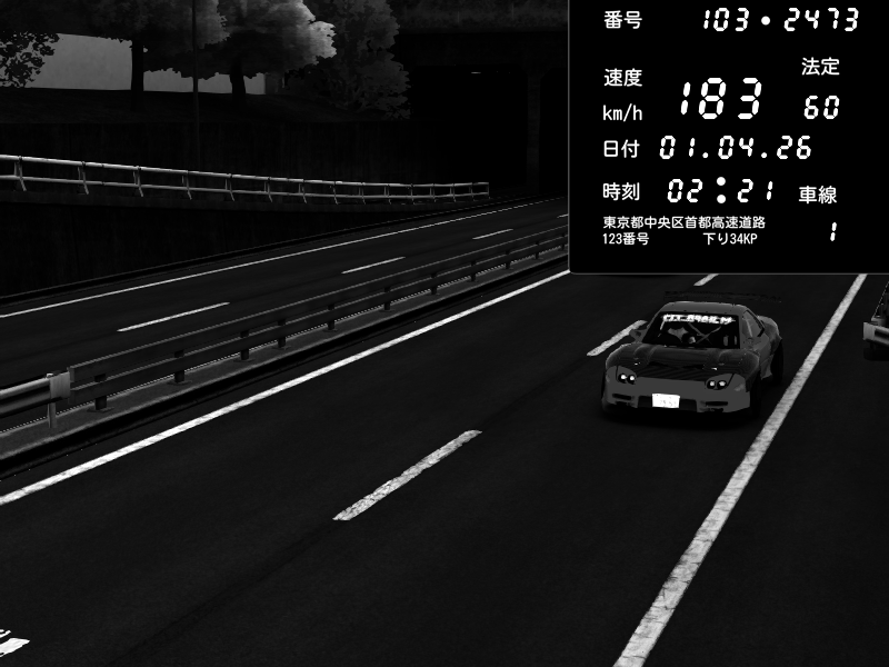 | 2026/04/01 02:21 | C1内回り 銀座 | 183 / 60 km/h | Pit Road M - Mitsubishi GTO Twin Turbo | CAPTURE |