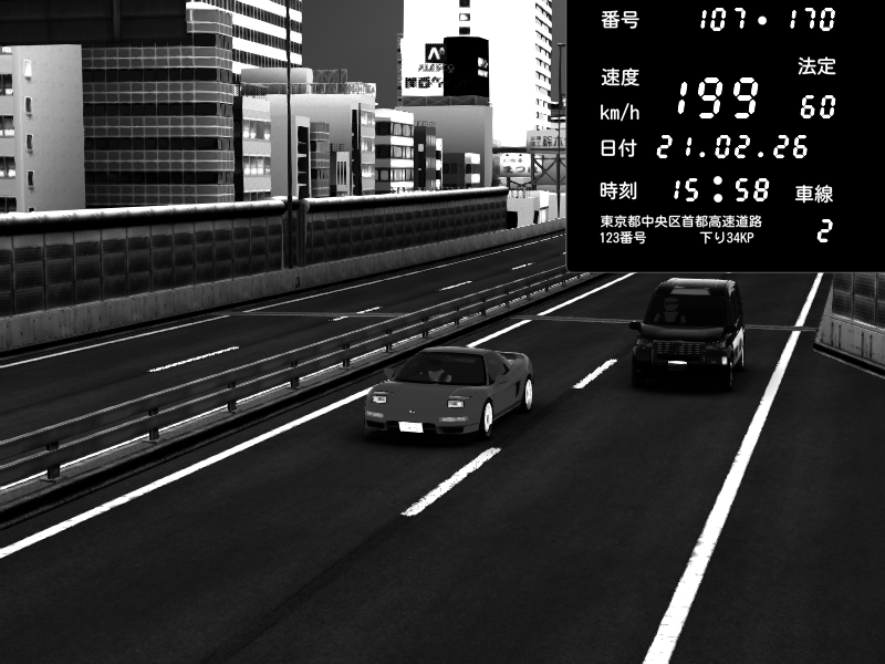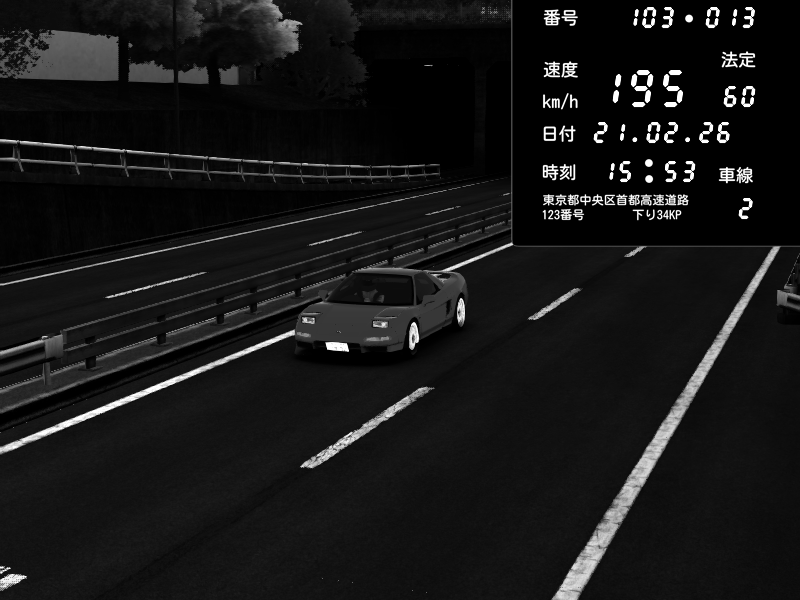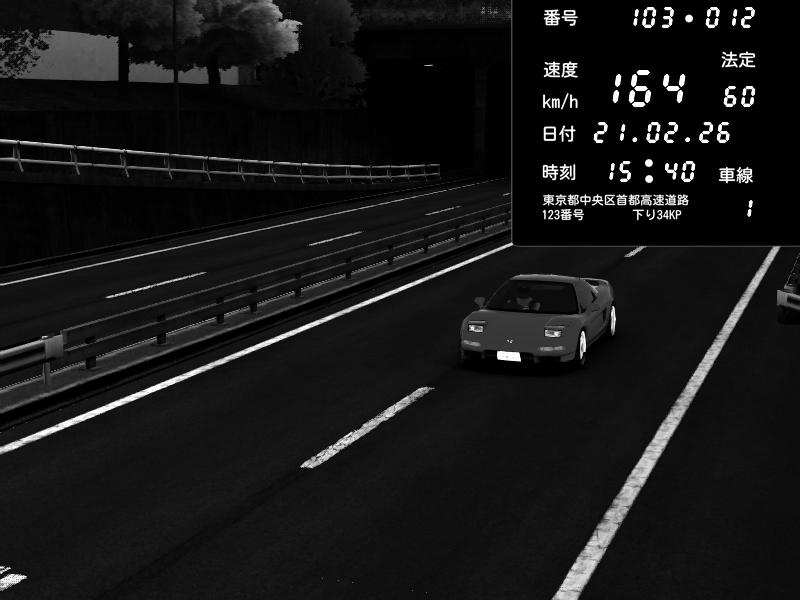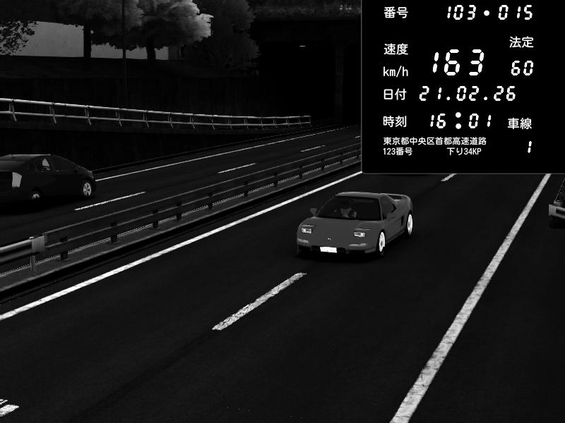 | 2026/02/21 16:03 | C1内回り 竹橋JCT | 160 / 60 km/h | Honda NSX [NA1] PVLSX | CAPTURE |