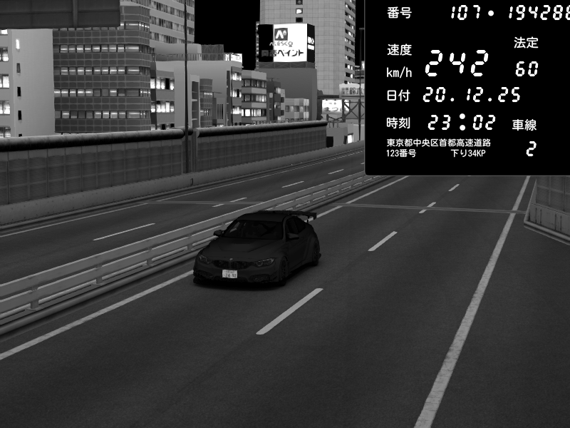 | 2025/12/20 22:40 | C1外回り 新富町 | 199 / 60 km/h | BMW M4 crash.Sp Varis Widebody | CAPTURE |