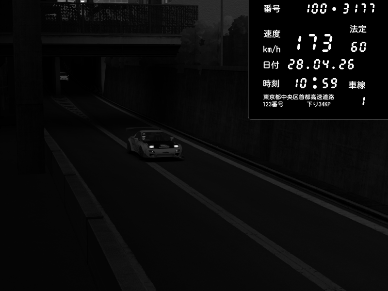 | 2026/04/28 10:59 | C1内回り 京橋 | 173 / 60 km/h | Mazda RX-7 FD3S FEED Afflux GT3 | CAPTURE |