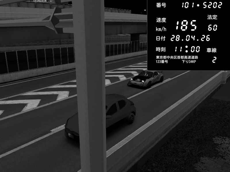 | 2026/04/28 11:00 | C1内回り 竹橋JCT | 185 / 60 km/h | Mazda RX-7 FD3S FEED Afflux GT3 | CAPTURE |