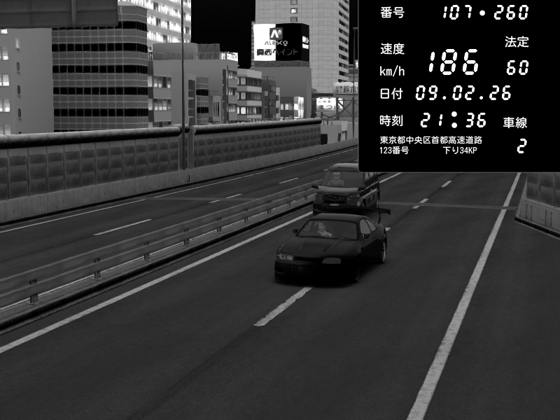 | 2026/02/09 21:36 | C1外回り 芝公園 | 186 / 60 km/h | Nissan Skyline GTR R33 (S3 - Wangan) | CAPTURE |