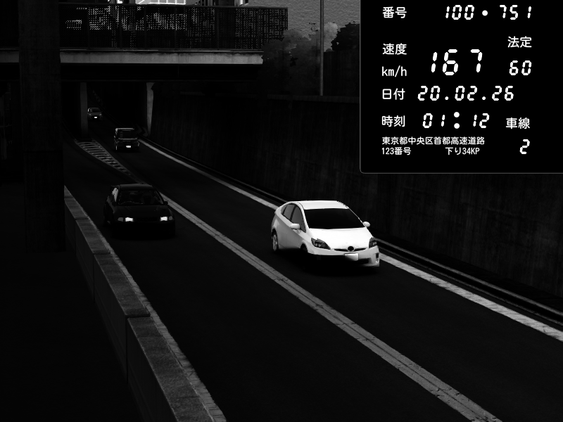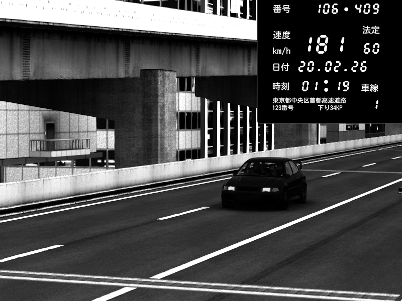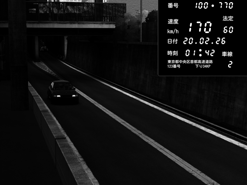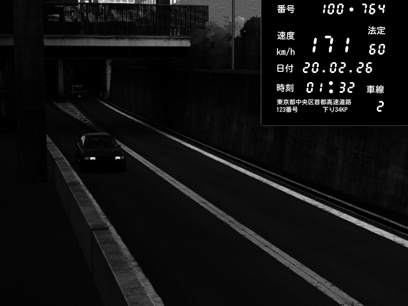 | 2026/02/20 01:42 | C1内回り 京橋 | 170 / 60 km/h | Mitsubishi Lancer Evolution V Wangan Spec | CAPTURE |