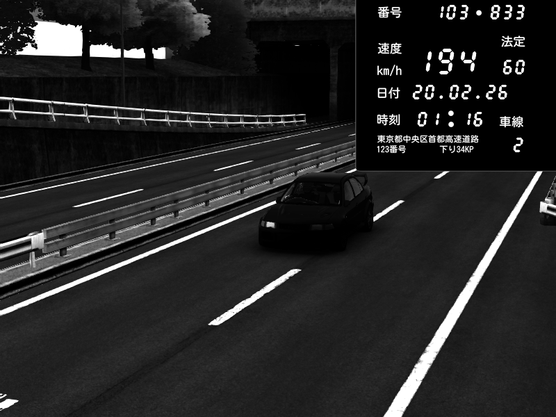 | 2026/02/20 01:16 | C1内回り 銀座 | 194 / 60 km/h | Mitsubishi Lancer Evolution V Wangan Spec | CAPTURE |