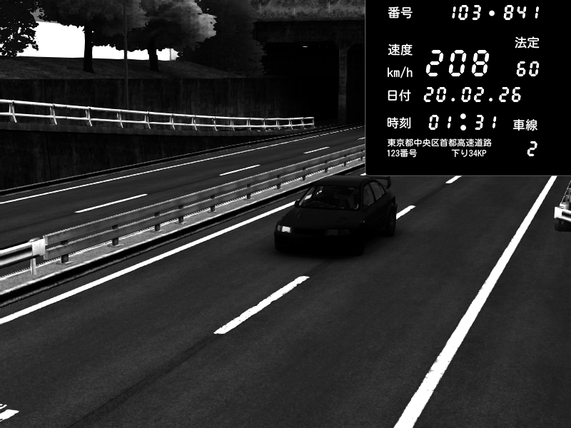 | 2026/02/20 01:31 | C1内回り 銀座 | 208 / 60 km/h | Mitsubishi Lancer Evolution V Wangan Spec | CAPTURE |