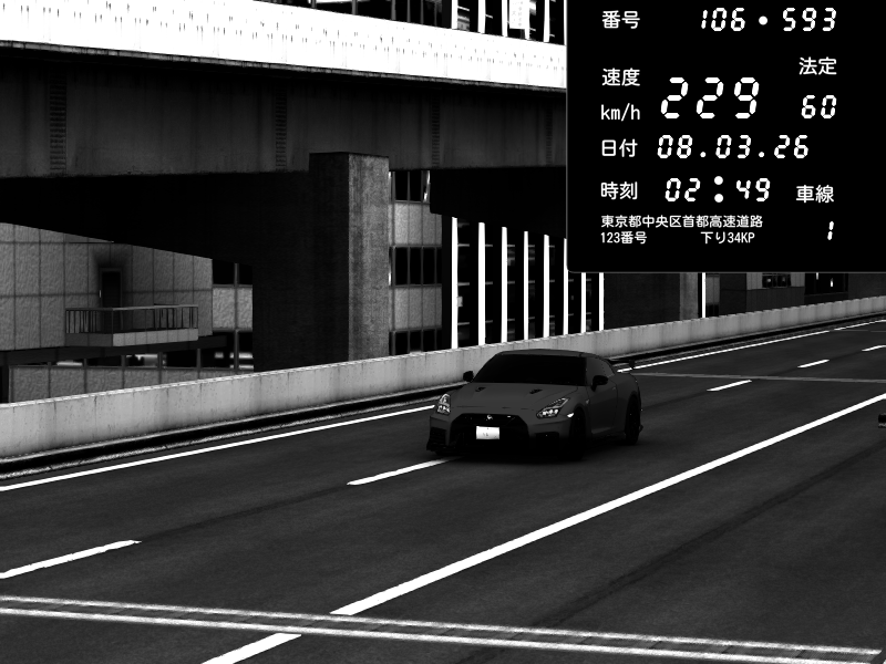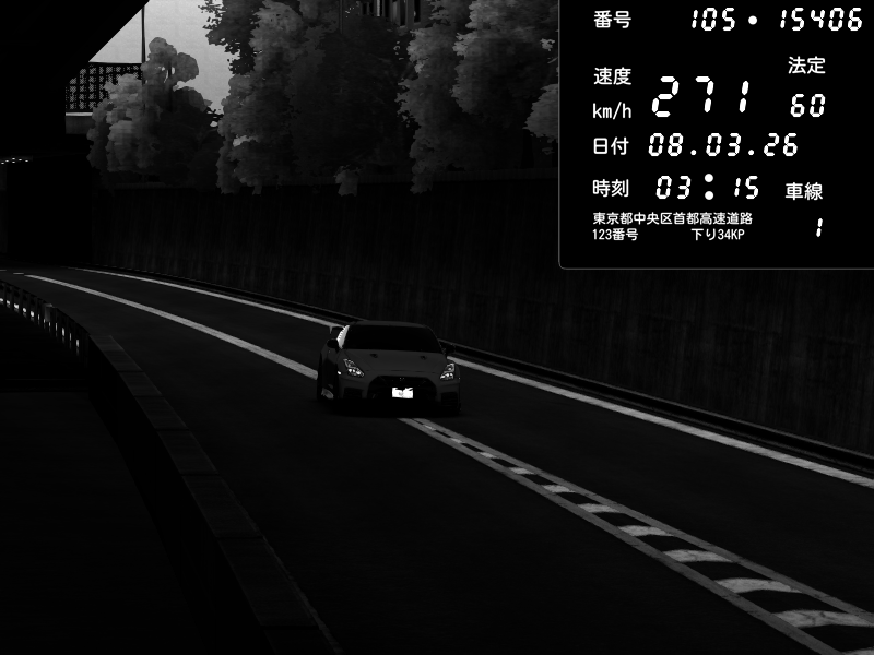 | 2026/03/08 03:15 | C1外回り 京橋 | 271 / 60 km/h | Nissan GT-R NISMO 2017 | CAPTURE |