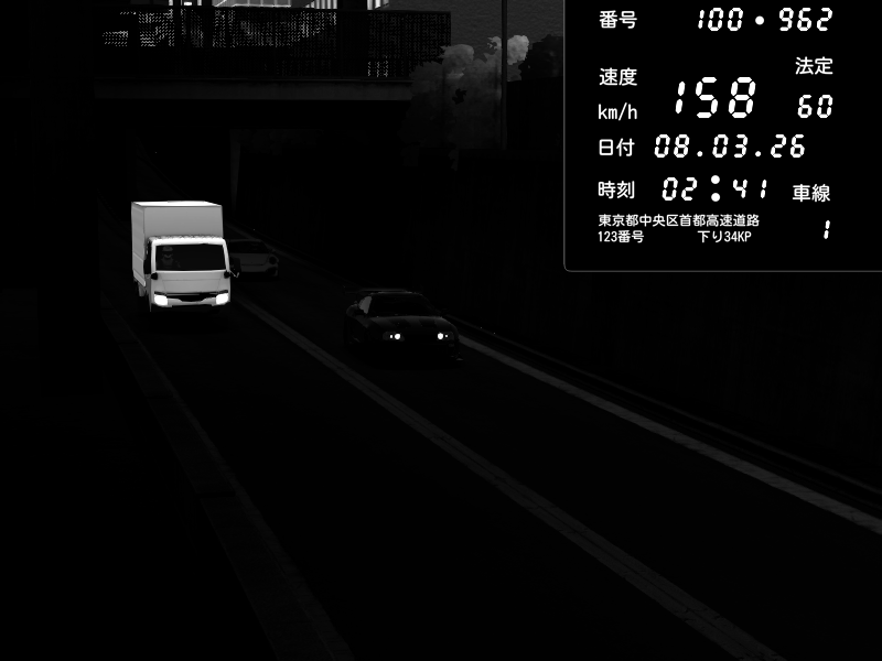 | 2026/03/08 02:49 | 9号下り 木場 | 229 / 60 km/h | Nissan GT-R NISMO 2017 | CAPTURE |