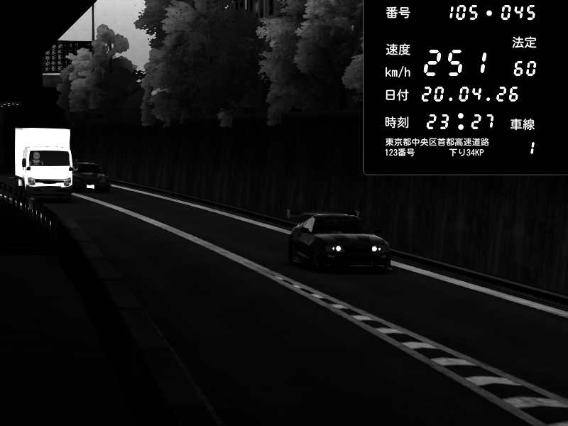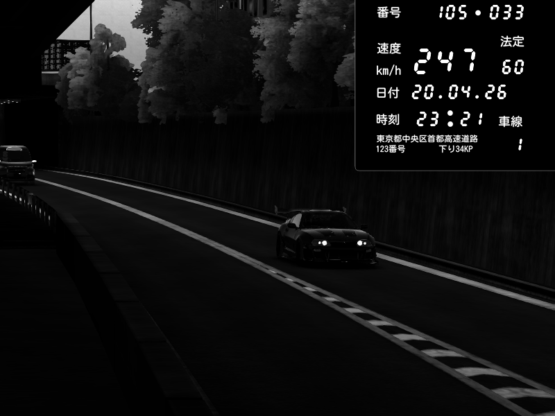 | 2026/04/04 23:45 | C1外回り 新富町 | 125 / 60 km/h | Nissan Skyline GT-R R34 Nismo Omori Factory S1 | CAPTURE |