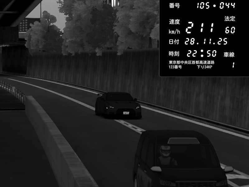 | 2025/11/28 22:50 | C1外回り 京橋 | 211 / 60 km/h | Nissan GT-R NISMO 2017 | CAPTURE |