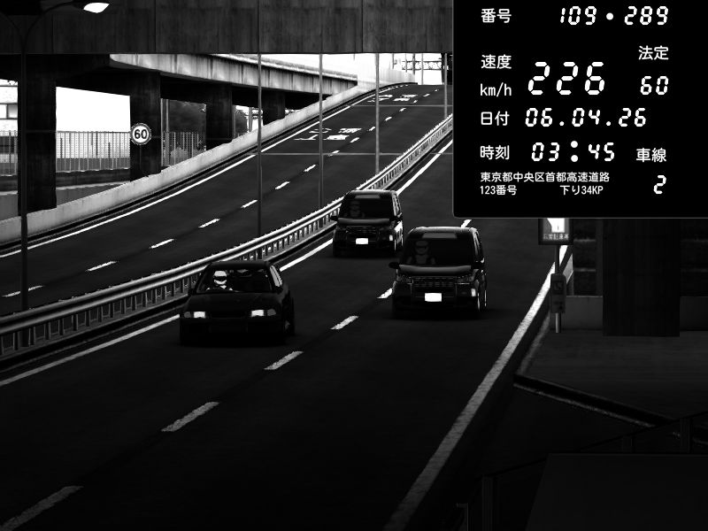 | 2026/04/06 03:45 | K1上り 子安 | 226 / 60 km/h | Mitsubishi Lancer Evolution V Wangan Spec | CAPTURE |