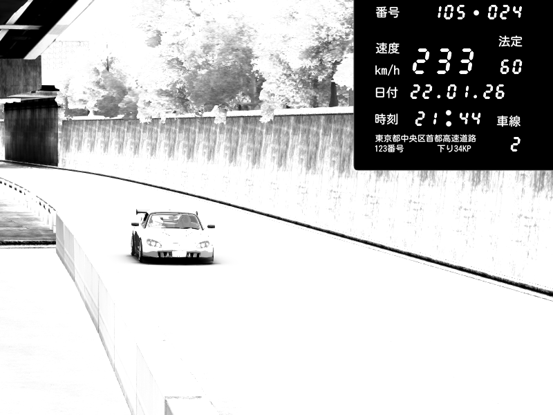 | 2026/01/22 21:44 | C1外回り 京橋 | 233 / 60 km/h | Honda S2000 (AP2 - Legendary) | CAPTURE |