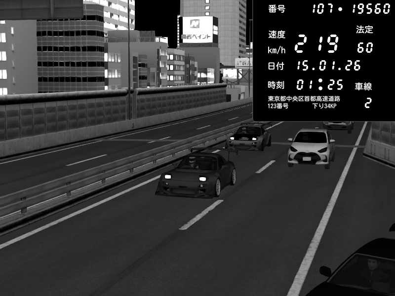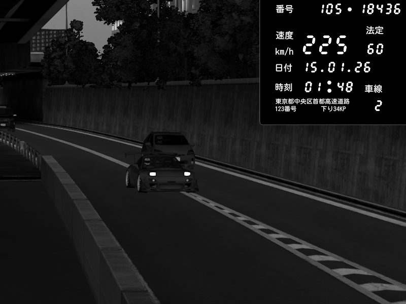 | 2026/01/15 01:55 | C1外回り 京橋 | 192 / 60 km/h | Mazda RX-7 FD3S FEED Afflux GT3 | CAPTURE |