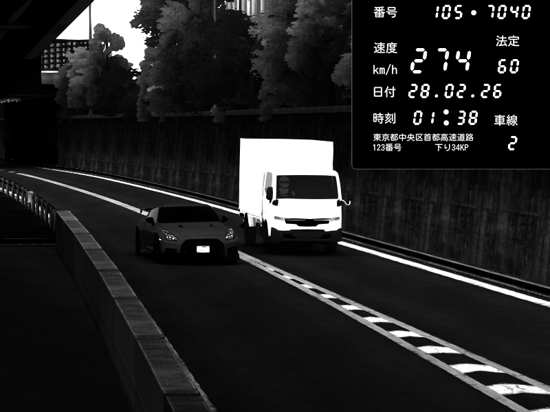 | 2026/02/28 01:38 | C1外回り 京橋 | 274 / 60 km/h | Nissan GT-R NISMO 2017 | CAPTURE |
