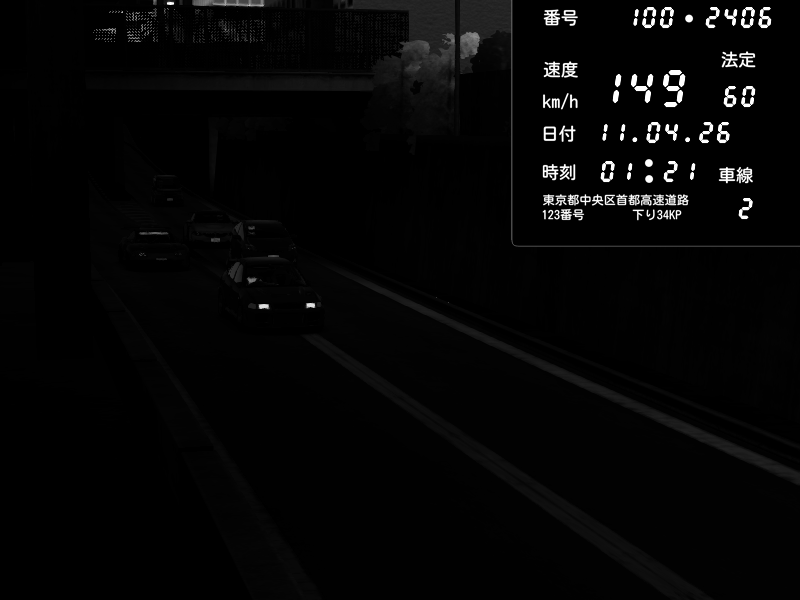| 2026/04/11 00:42 | C1内回り 竹橋JCT | 156 / 60 km/h | Mitsubishi Lancer Evolution V Wangan Spec | CAPTURE |
