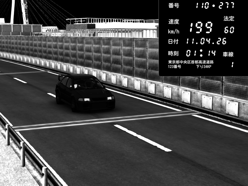 | 2026/04/11 01:20 | C1内回り 銀座 | 179 / 60 km/h | Mitsubishi Lancer Evolution V Wangan Spec | CAPTURE |