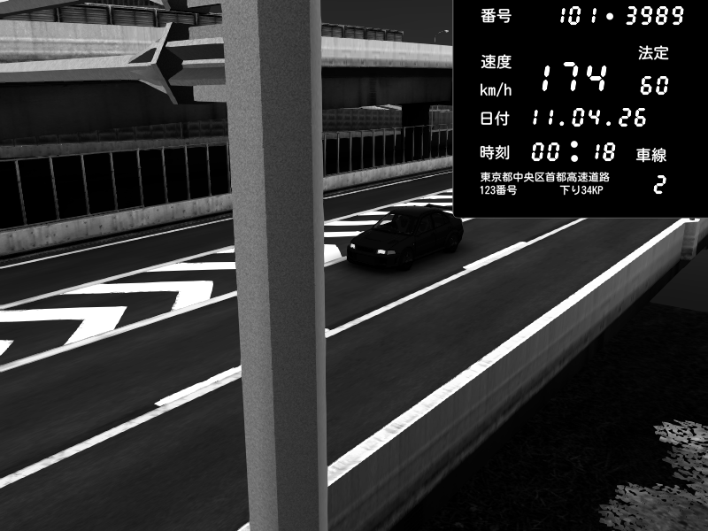 | 2026/04/11 00:18 | C1内回り 竹橋JCT | 174 / 60 km/h | Mitsubishi Lancer Evolution V Wangan Spec | CAPTURE |