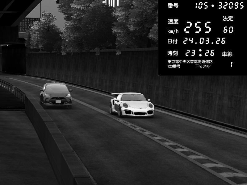 | 2026/03/24 23:26 | C1外回り 京橋 | 255 / 60 km/h | Porsche 911 GT3 RS | CAPTURE |