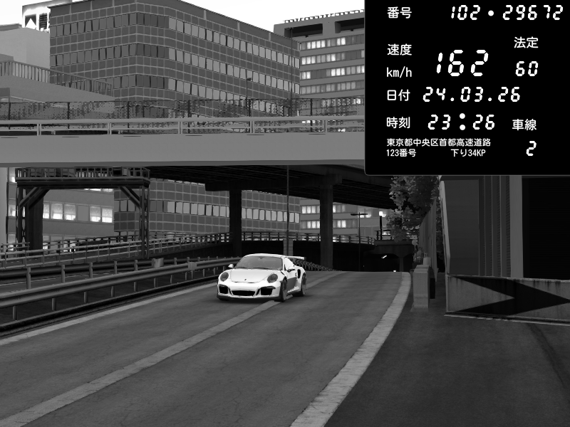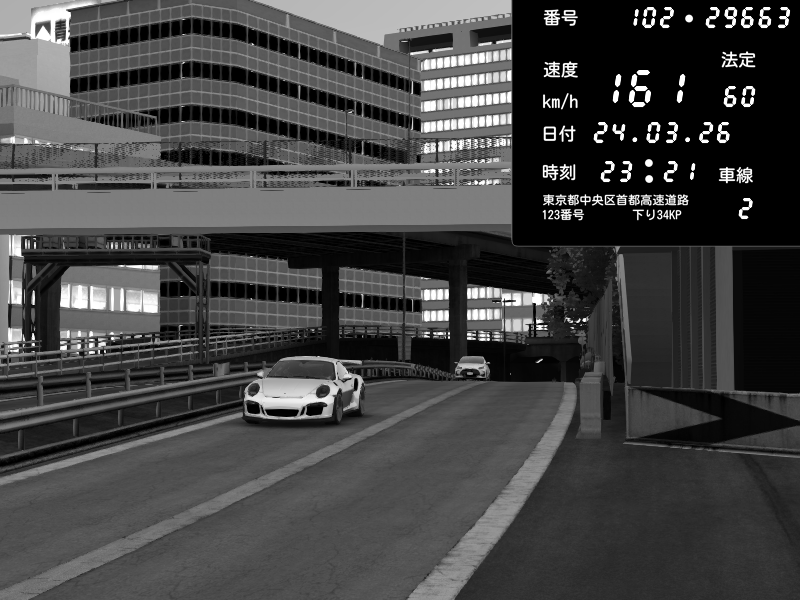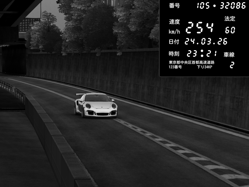 | 2026/03/24 23:26 | C1外回り 新富町 | 162 / 60 km/h | Porsche 911 GT3 RS | CAPTURE |