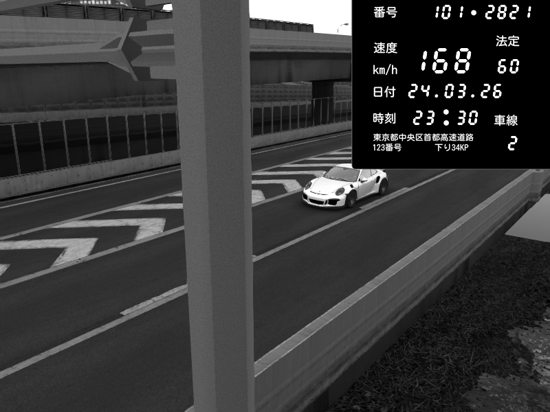 | 2026/03/24 23:30 | C1内回り 竹橋JCT | 168 / 60 km/h | Porsche 911 GT3 RS | CAPTURE |