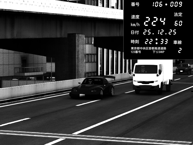 | 2025/12/25 22:12 | 4号下り 代々木 | 114 / 60 km/h | Honda S2000 Turbo GT1 Amuse (AP1) | CAPTURE |