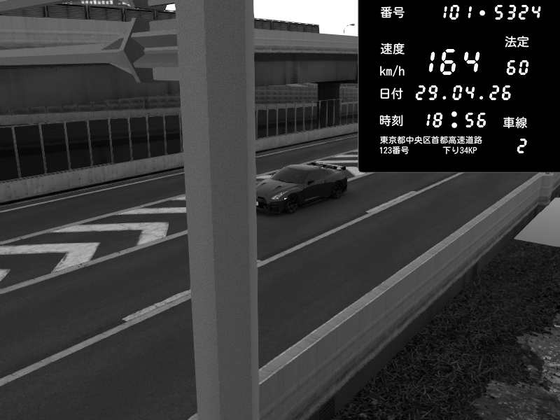 | 2026/04/29 18:56 | C1内回り 竹橋JCT | 164 / 60 km/h | Nissan GT-R NISMO 2017 | CAPTURE |