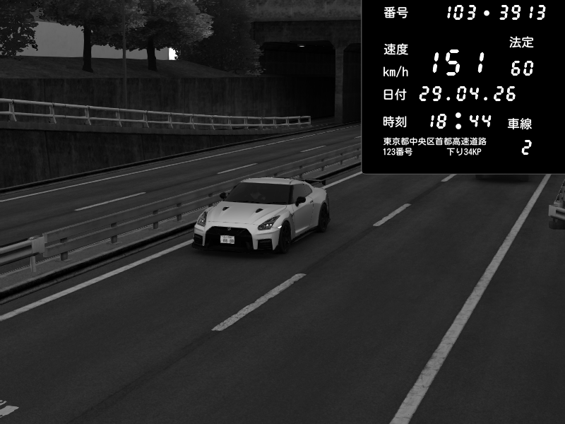 | 2026/04/29 18:44 | C1内回り 銀座 | 151 / 60 km/h | Nissan GT-R NISMO 2017 | CAPTURE |