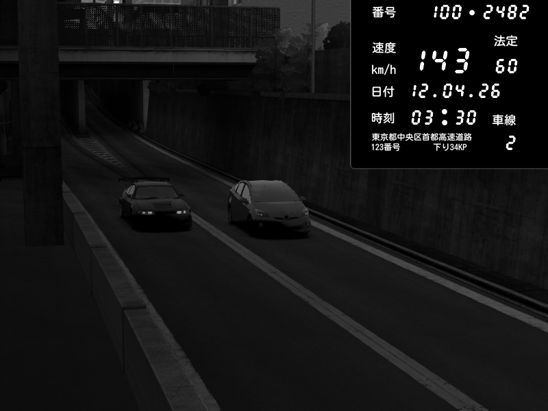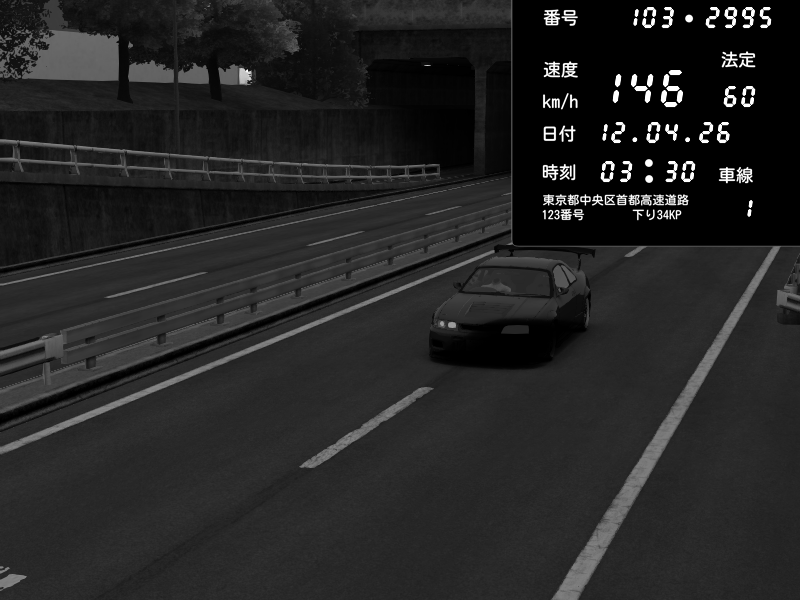 | 2026/04/12 03:30 | C1内回り 銀座 | 146 / 60 km/h | Nissan Skyline GTR R33 (S3 - Wangan) | CAPTURE |