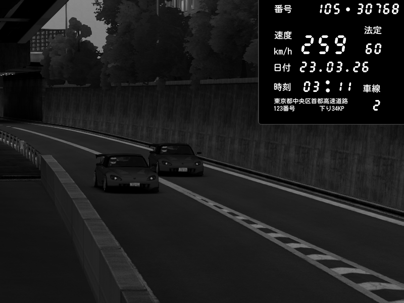 | 2026/03/23 03:11 | C1外回り 京橋 | 259 / 60 km/h | Honda S2000 (AP2 - Legendary) | CAPTURE |