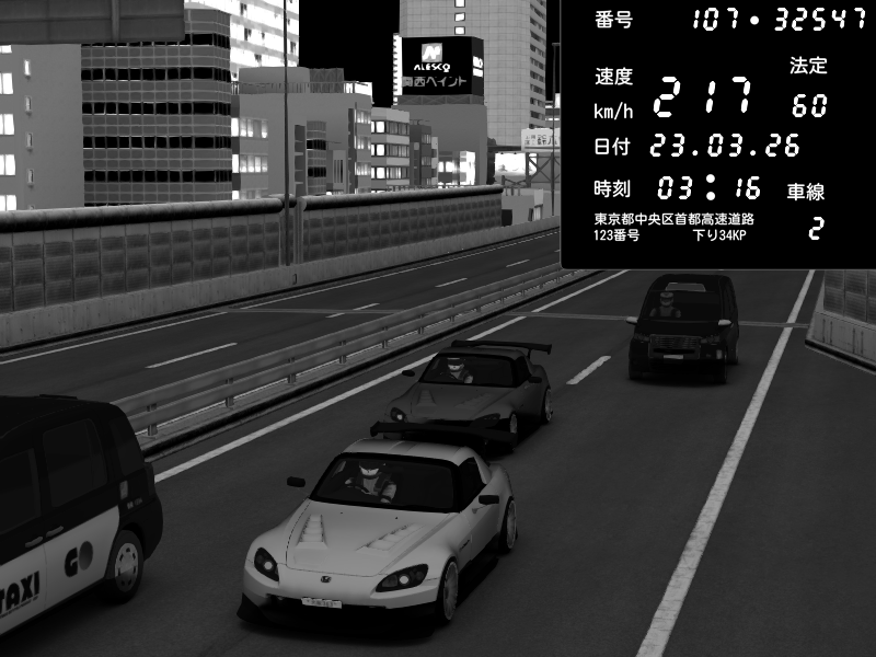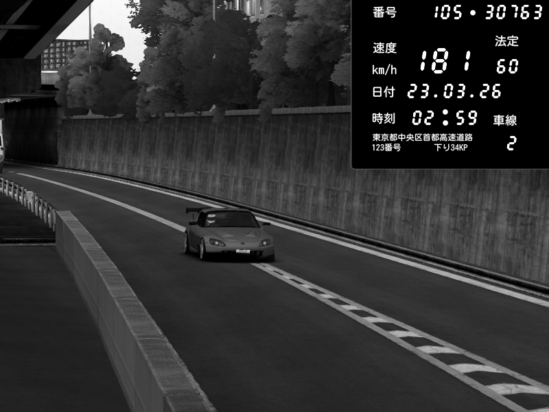 | 2026/03/23 02:59 | C1外回り 京橋 | 181 / 60 km/h | Honda S2000 (AP2 - Legendary) | CAPTURE |